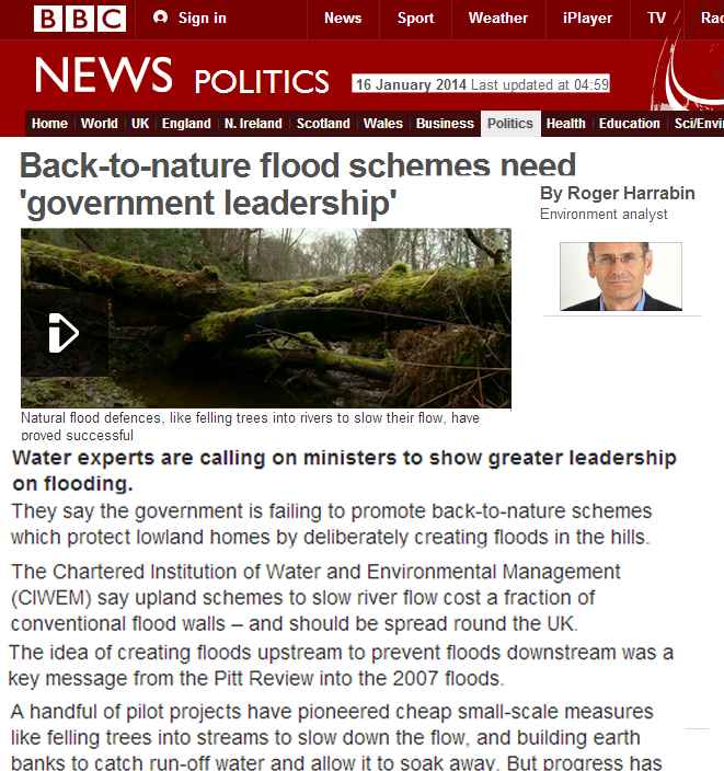 The Belford strategy uses 45 features throughout the landscape to slow down and hinder the rush of flood water from the land and from swollen streams, rather than one large scale and dominant structure.